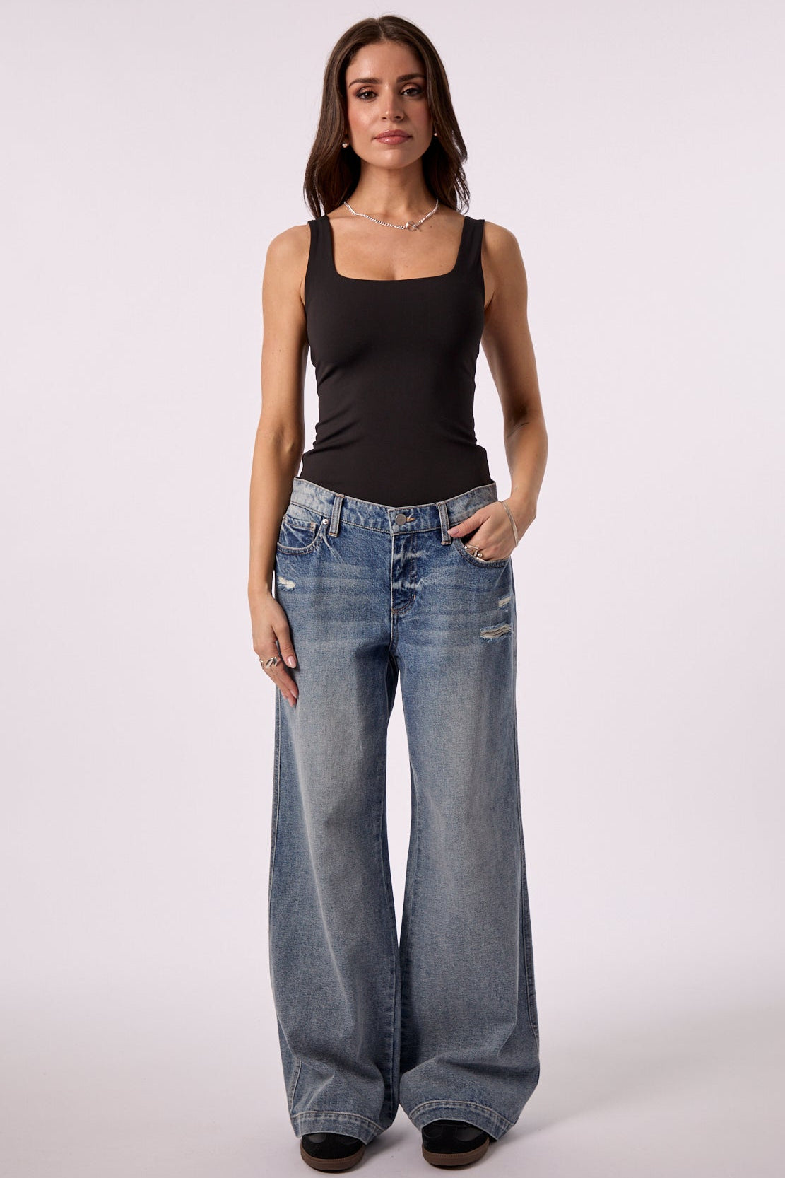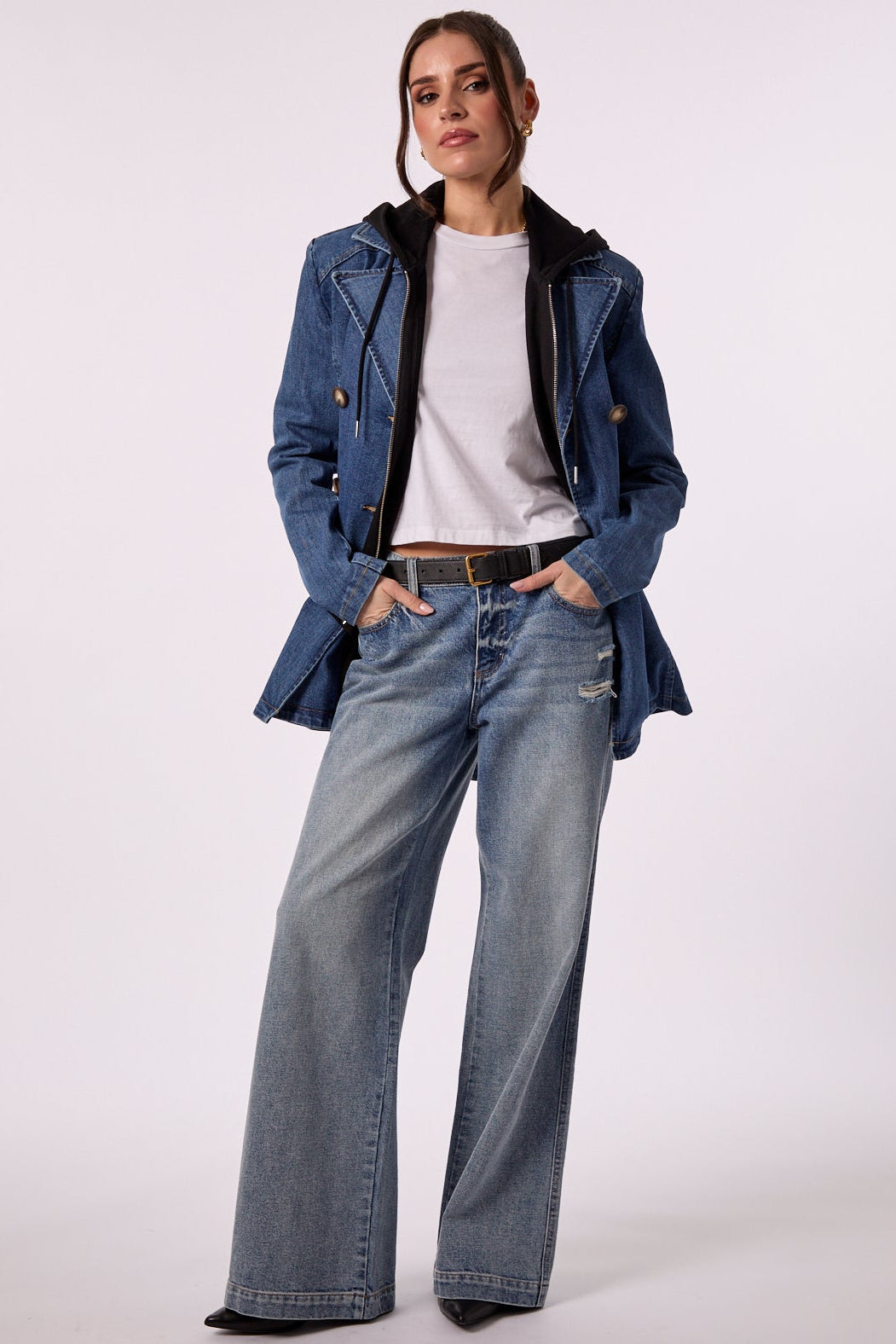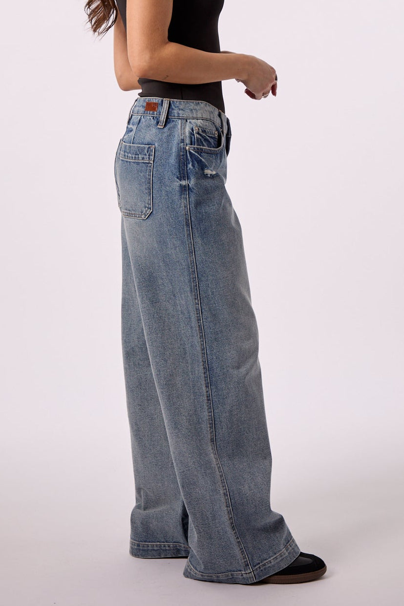 The Waverly Mid Rise Wide Leg in Dallas offers an effortless blend of comfort and style. Designed with a flattering mid-rise fit and a relaxed wide-leg silhouette, this pair is finished in a timeless wash that goes with everything.